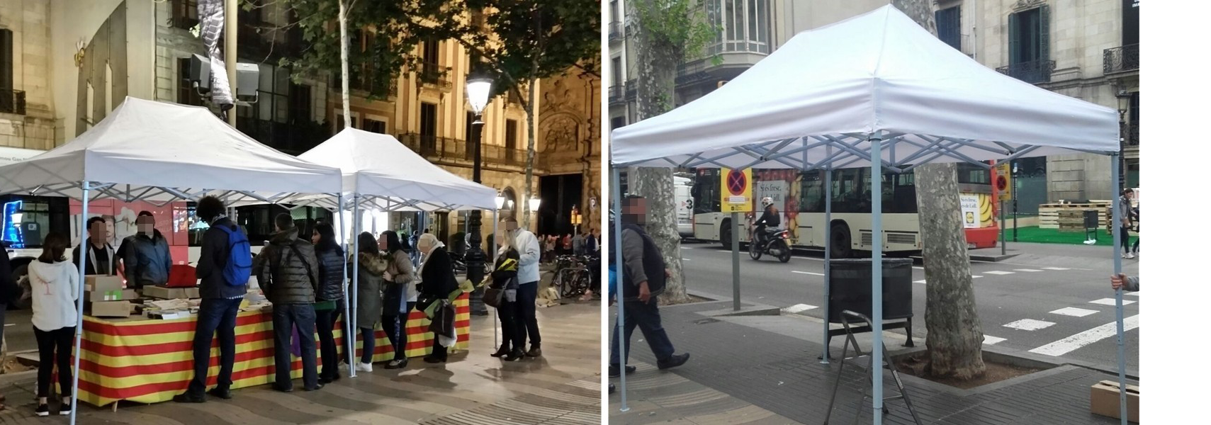 • Pared partida. Este toldo, es ideal para los puestos de información, en los que se puede interactuar, entrando por la parte de enfrente.